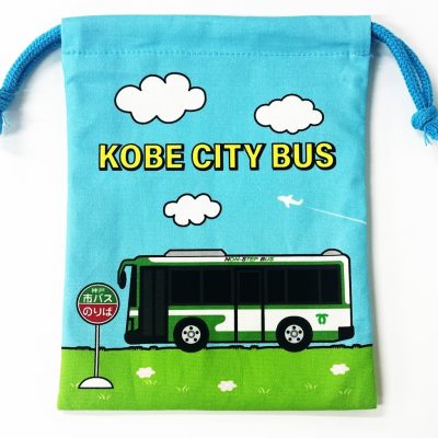 「市バスエルガ」と「市バスポンチョバス」をデザインした巾着です。学校やお仕事、おでかけ先での小物入れにぜひ✨サイズ:縦195mm×横150mm(マチなし)