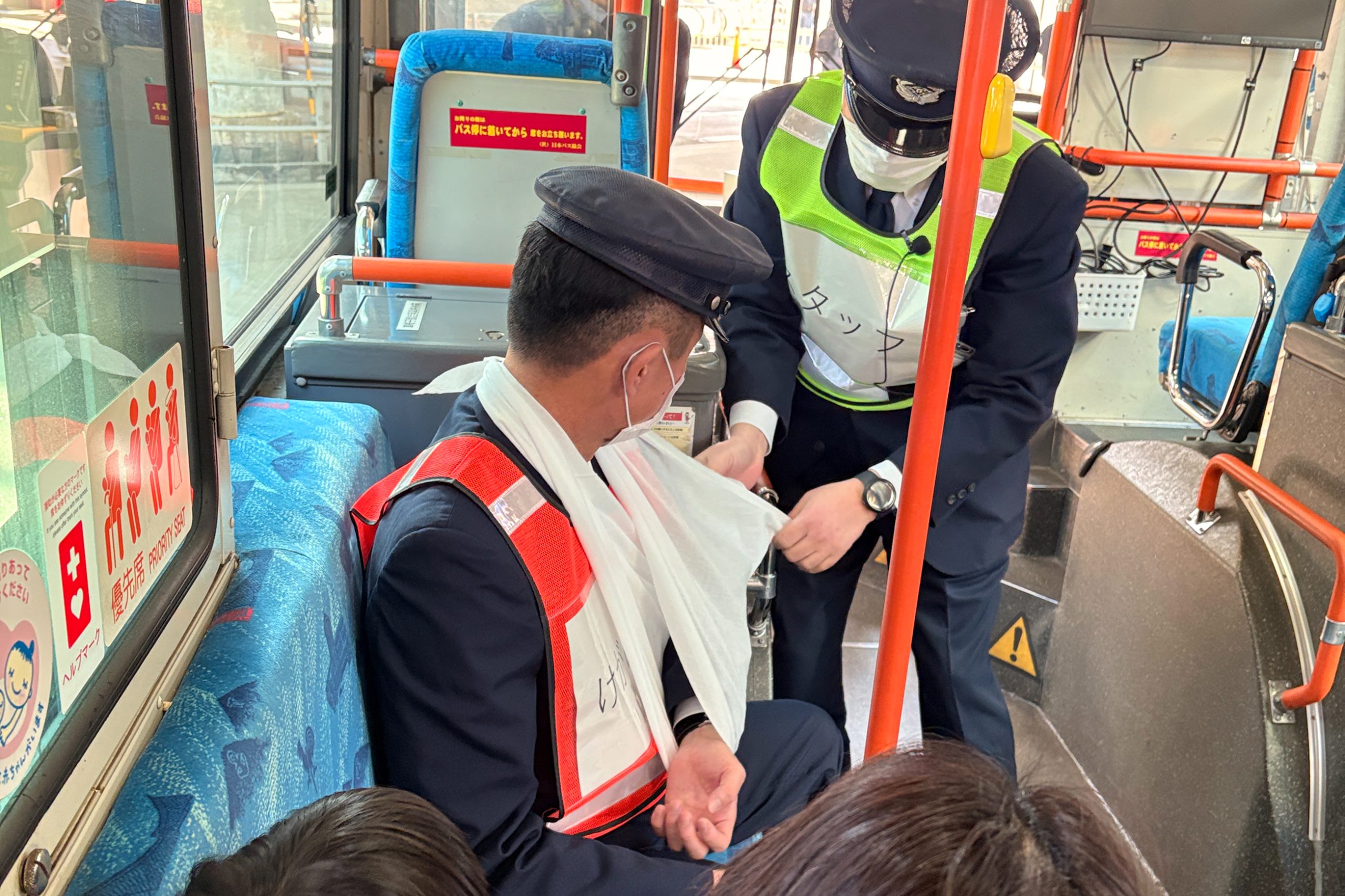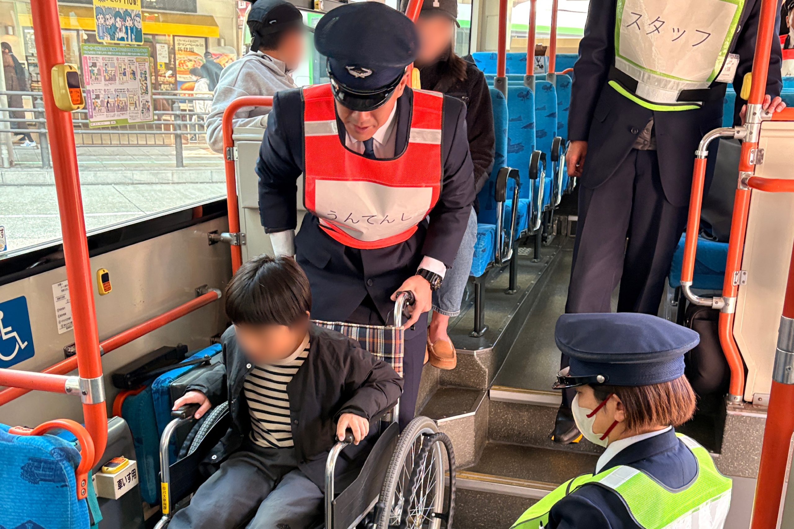 ─毎年災害訓練をしています。2026年1月には、初めて市民の方にも参加してもらいました。バスに乗っているときに地震が起こったことを想定した訓練です。